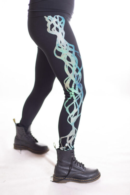 Here we have the pattern Árfarvegur on leggings. The material in the leggins is thick cotton with a good stretch. High waist.